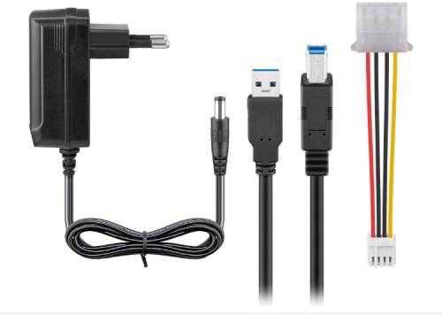 - Incl. 12 V power supply unit for external power supply and Molex cable for connecting IDE/SATA drives (2.5 inch and 3.5 inch)