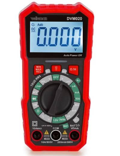 Dette digitale multimåler er det perfekte værktøj for elektrikere, selvbyggere og hobbyentusiaster. Takket være sin kompakte og robuste design kan du tage den med overalt. Den meget komplette multimåler er egnet til at måle spænding, strøm og modstand med de medfølgende testkabler (100cm). Den har Sand RMS-funktion, som sikrer nøjagtige spændings- og strømmålinger. Med de inkluderede temperatursonder kan du let udføre nøjagtige temperaturtest med et måleområde på -20°C til 1000°C. Måleren har en 2000-tals baggrundsbelyst display, hvilket gør udlæsningen nem, og en lommelygte til mørke rum. Med en sikkerhedsrating på CAT III - 600 V og en strømmåling på 200mA til 10A ved 600V kan du være sikker på en sikker brug.