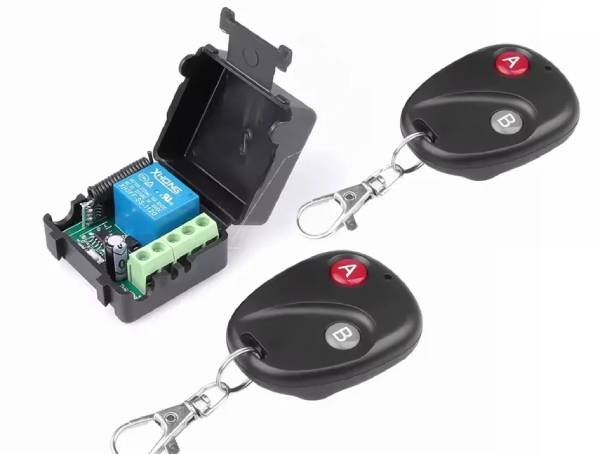 - Skifttilstand: (Tryk to gange på læringsknappen) Tryk én gang på fjernbetjeningens knap for at tænde relæet, og tryk igen for at slukke det.